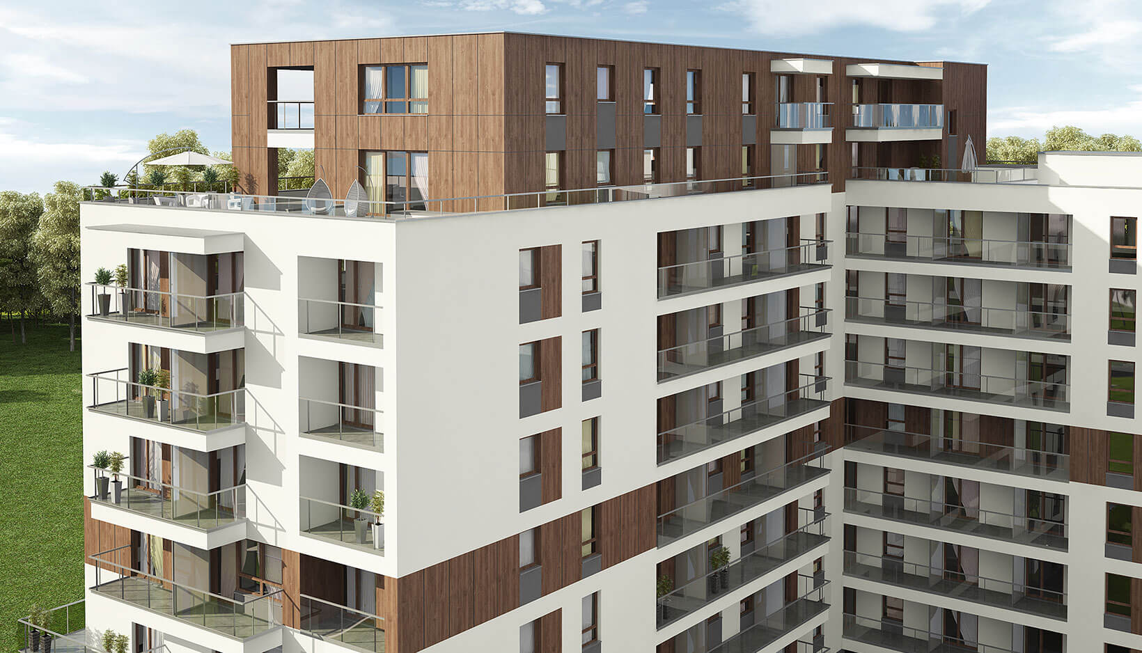 Oferujemy lokale 1, 2, 3 oraz 4 pokojowe o różnorodnym rozkładzie pomieszczeń, a także z dużymi balkonami lub przestronnymi tarasami na dachu. Na parterze zaś, polecamy mieszkania z atrakcyjnymi ogródkami.